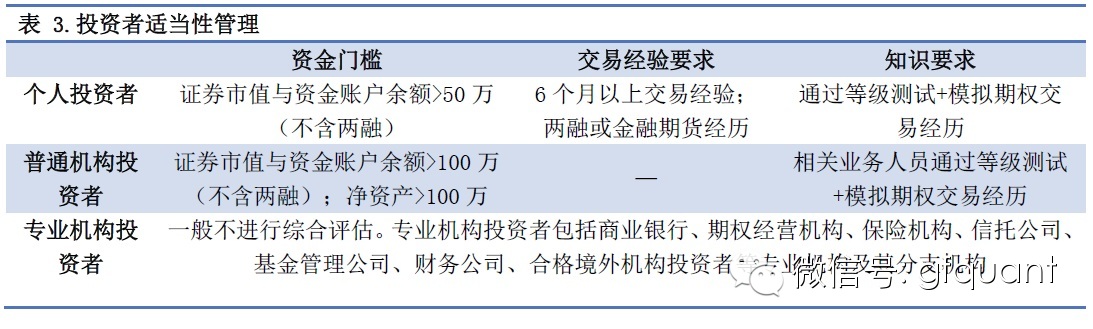 上交所有关投资者适当性管理指引文件对不同类型投资者参与期权提出明确规定:
